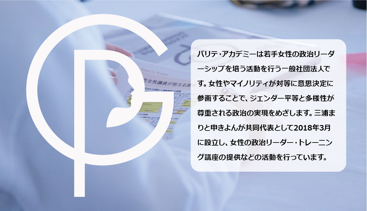 女性のパワーで、みんなのための政治を実現しませんか?パリテ・アカデミーでは、女性がひとり一人自信をもって、仲間たちとつながり、政治について学びアクション出来るための2泊3日の政治リーダートレーニング合宿を開催します。
