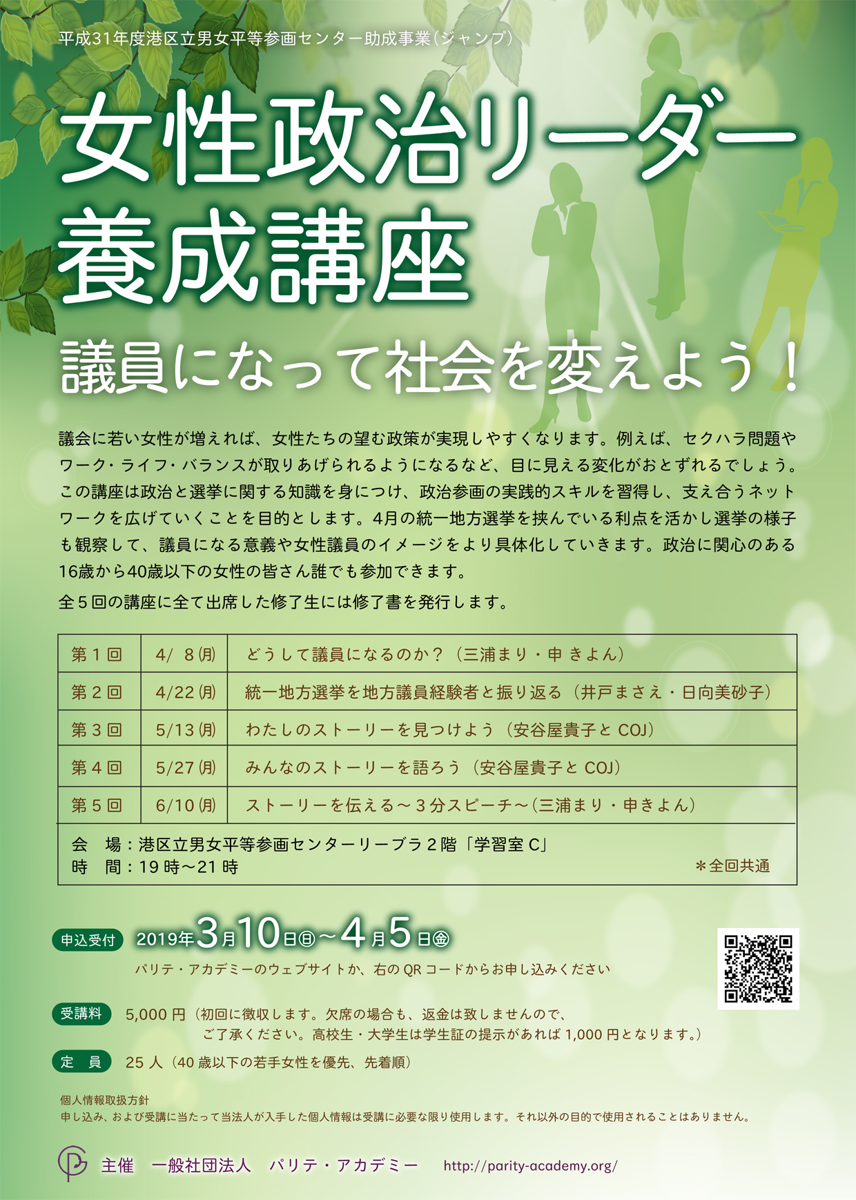 女性政治リーダー養成講座をどうデザインするか?2018年7月13日