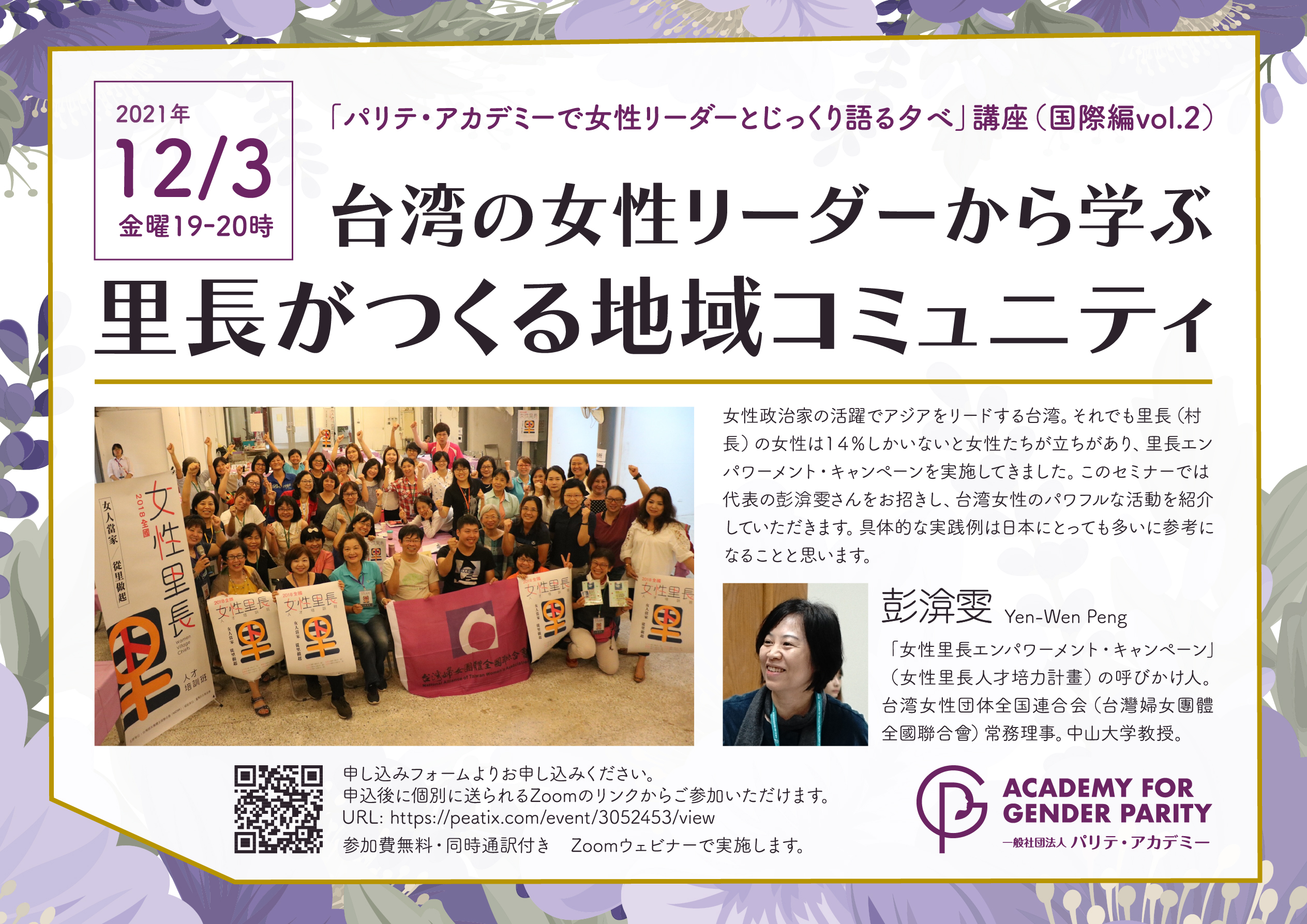 台湾の女性リーダーから学ぶ~里長がつくる地域コミュニティ2021年12月3日