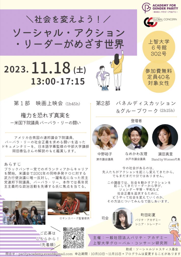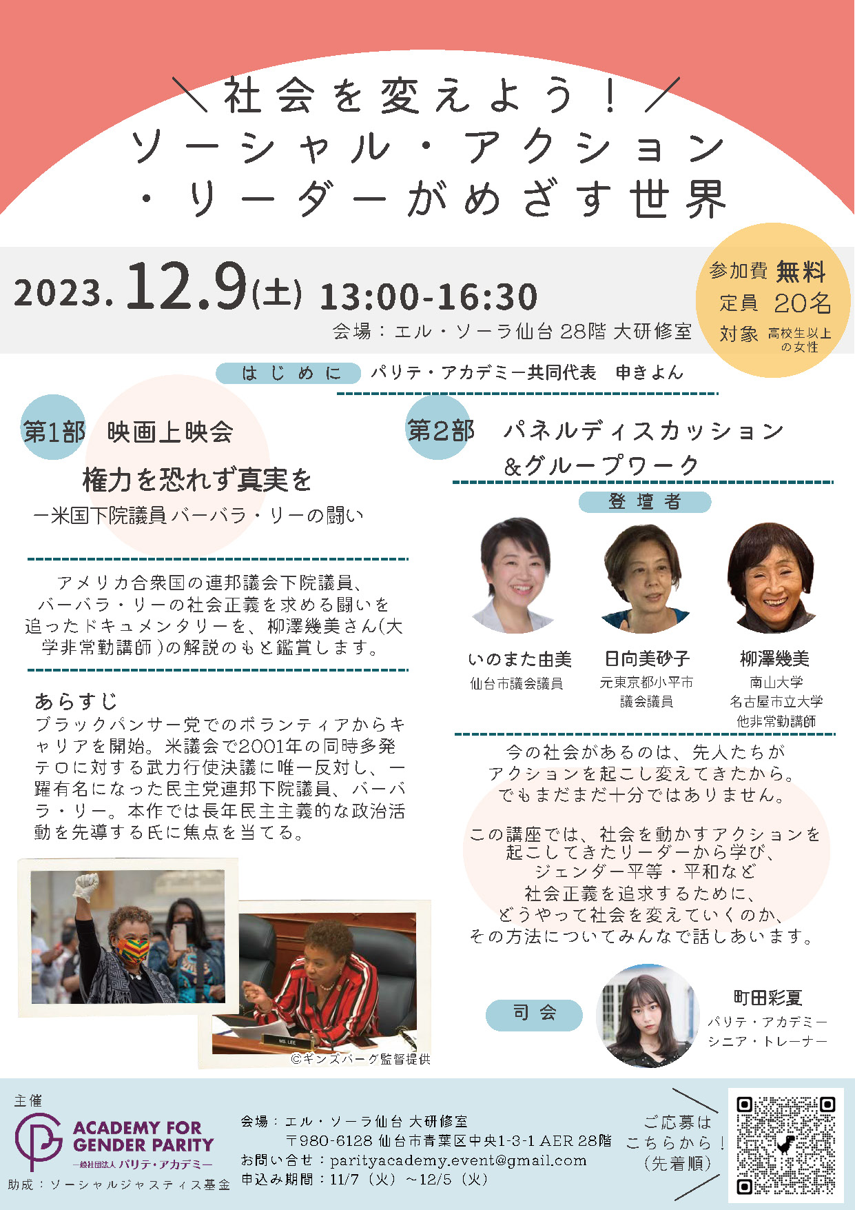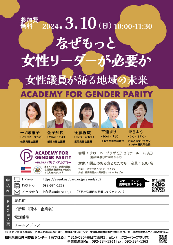 「パリテ・アカデミーで女性リーダーとじっくり語る夕べ」講座(国際編 vol.2)